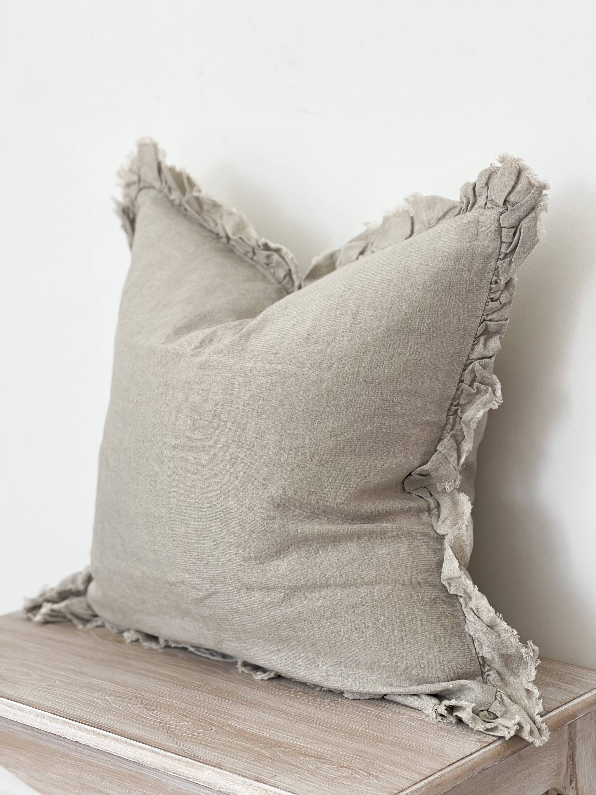 Hallie Ruffled Linen Cushion Cover – Natural Beige: 45 x 45 cm