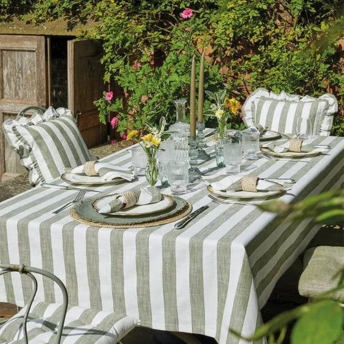 Striped Square Cushion 100% cotton. Finished with a ruffle fringe. Zip closure for easy removal of the pad.