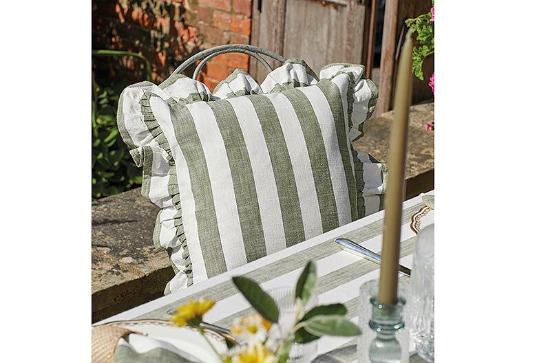 Striped Ruffle Square Cushion - Green
